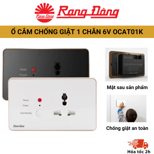 Ổ cắm âm tường chống giật Rạng Đông OCAT01 1C/16A , tự động ngắt khi bị điện giật an toàn tuyệt đối khi sử dụng