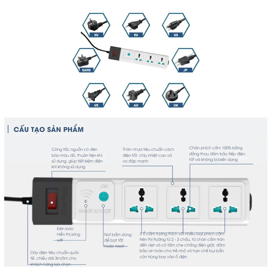 🔄 Thiết kế ổ cắm phù hợp với đa số phích cắm phổ biến trên thị trường, không cần bộ chuyển đổi.